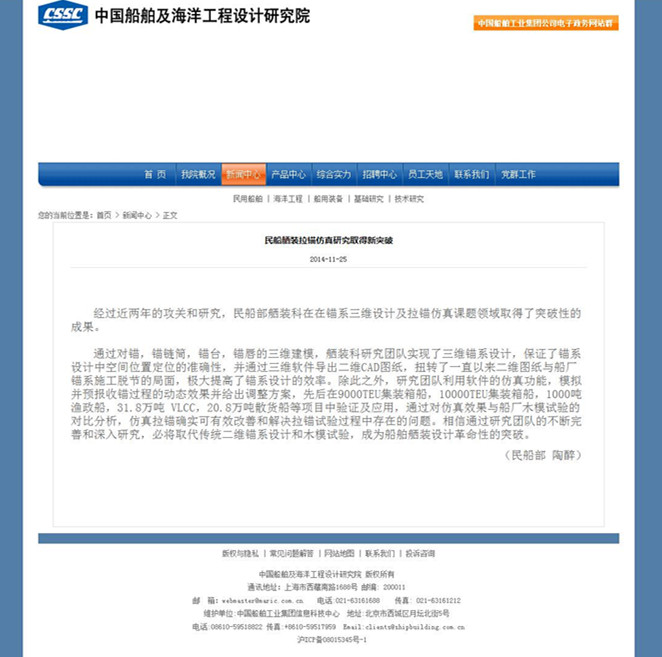 中船工業(yè)集團(tuán)下屬船舶設(shè)計(jì)設(shè)計(jì)院應(yīng)用本技術(shù)成果